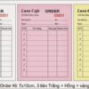 In order cho cửa hàng hay quán ăn của bạn là cách thuận tiện nhất để bạn đưa logo biểu trưng, tên quán, địa chỉ nhà hàng của bạn vào mỗi tờ phiếu order. Các hạng mục khác như tên nhân viên (nếu có) tên danh mục món, số bàn, số lượng, đơn giá, thành tiền… sẽ được để trống.